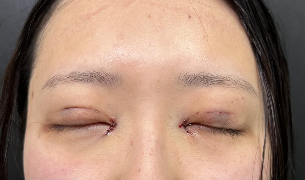 二重埋没法+目頭切開の術直後